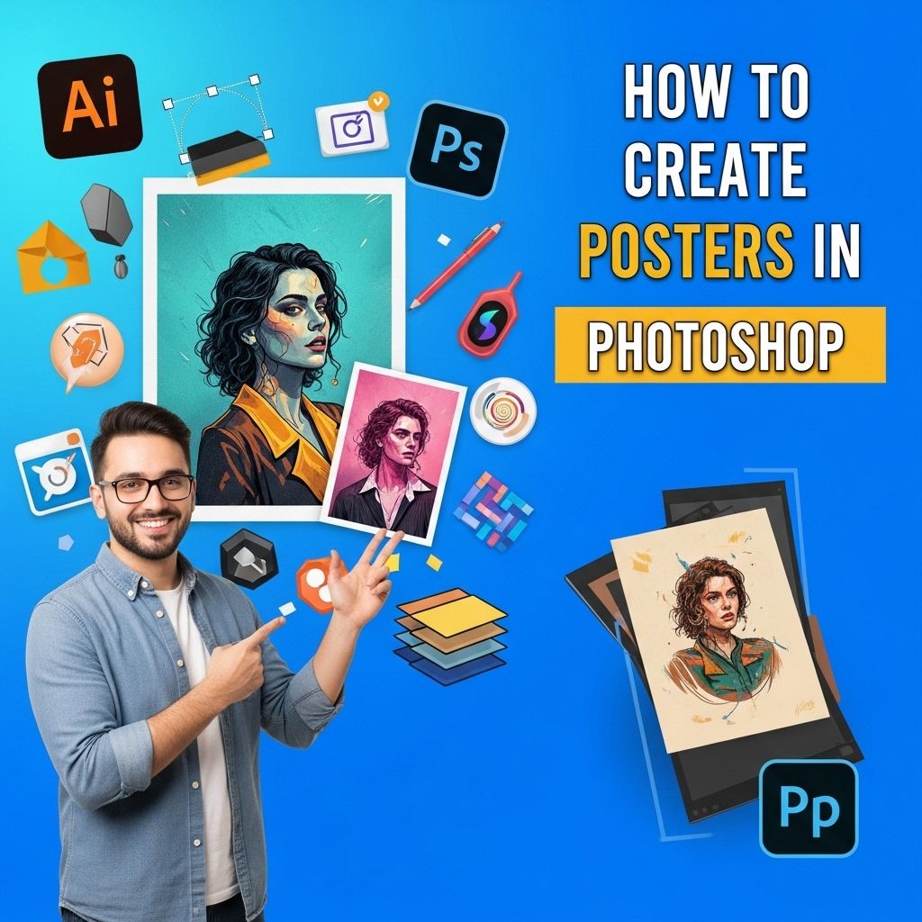 To create a poster in Photoshop, start by opening a new document with the desired dimensions, typically in inches or pixels. Use the ‘Rectangle Tool’ to create a background, then add text and images using the ‘Text’ and ‘Place Embedded’ options. Customize your design with layers, colors, and effects before saving your final poster.